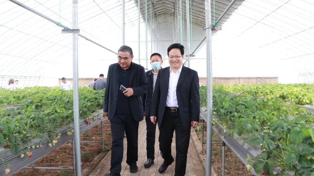 寧陽縣委副書記、縣長劉燦玉,縣政協副主席、縣文旅局局長石玉奎,縣政府黨組成員賈德果,蔣集鎮黨委書記孫維方,鎮黨委副書記、鎮長王一偉,友邦農業集團董事長張輝陪同調研友邦田園綜合體項目并座談。