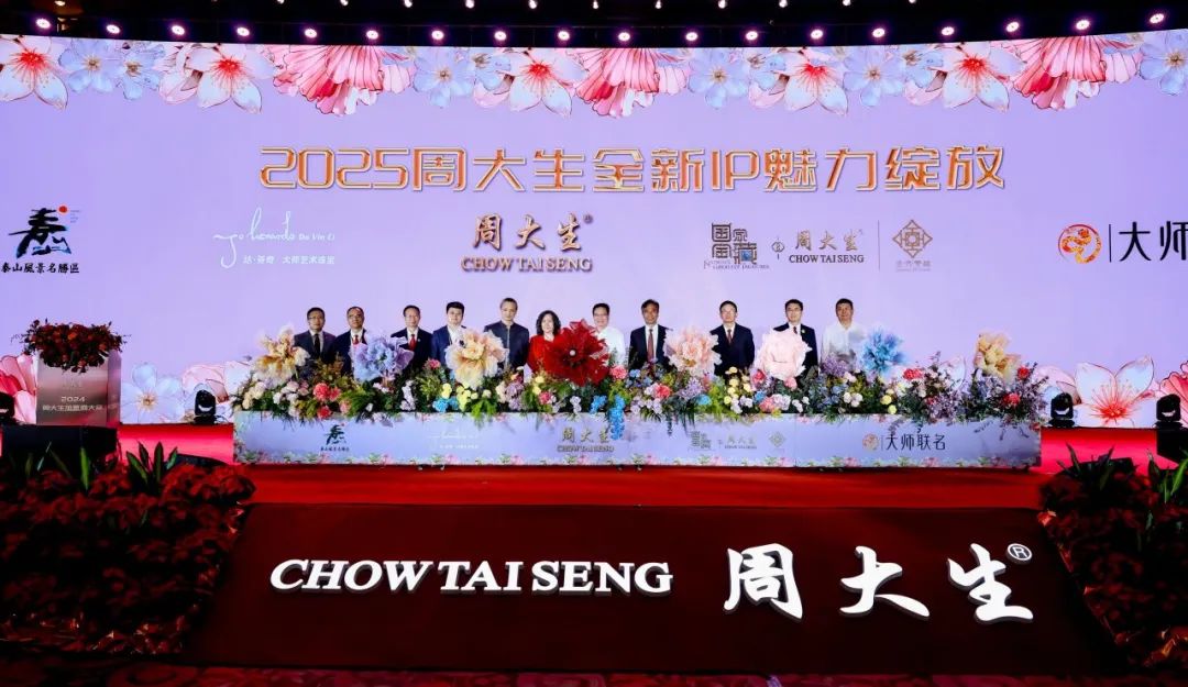 產(chǎn)品講解結(jié)束后,周大生2025超級(jí)品牌IP發(fā)布儀式舉行,時(shí)貞強(qiáng)、侯傳坤與周大生品牌方相關(guān)負(fù)責(zé)人共同啟動(dòng)儀式,“非凡國(guó)潮—平安泰山”作為2025周大生全新IP正式發(fā)布。