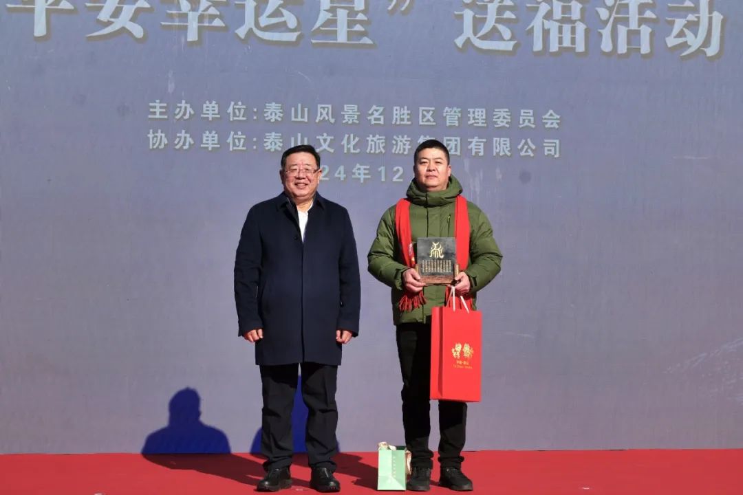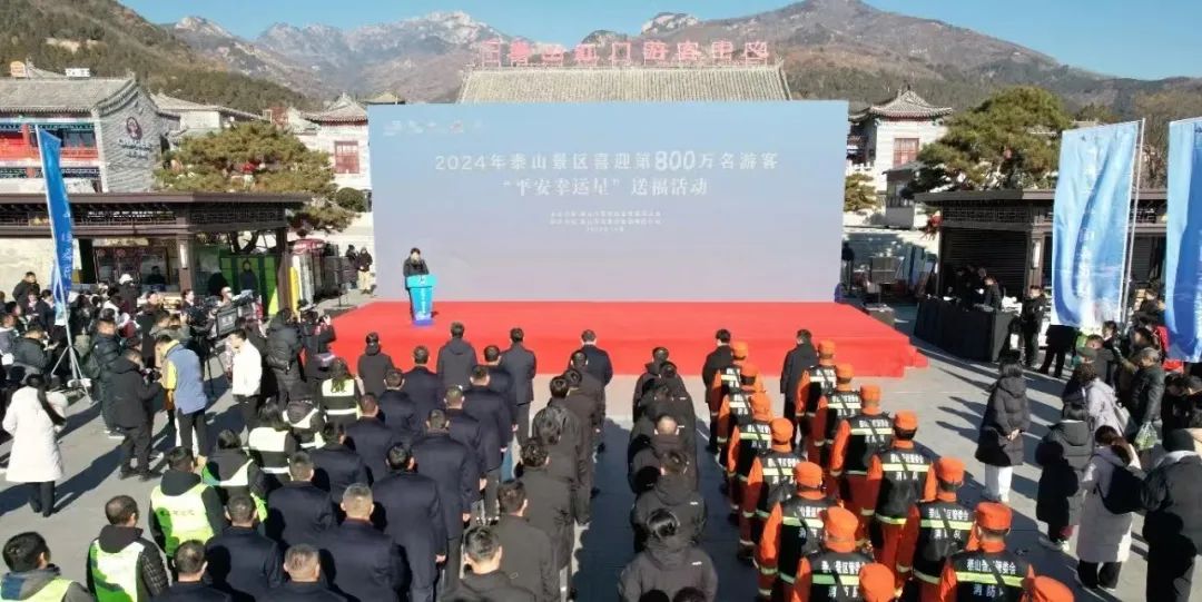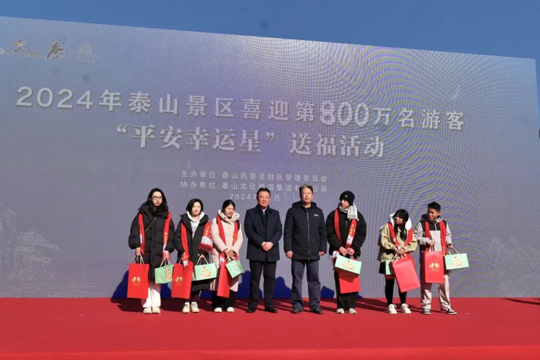 12月22日,泰山景區迎來了今年的第800萬名登山幸運游客,截至目前,購票進山游客數量達到了國內同類景區之最。市委書記、市人大常委會主任楊洪濤來到泰山2024年第800萬名游客平安泰山“幸運星”送福活動現場,為來自哈爾濱的“幸運星”游客贈送了紀念品和泰山文創大禮包。市委常委、秘書長張穎,市委常委、宣傳部部長王愛新,市人大常委會副主任、泰山文化傳承與高質量發展推進委員會黨委書記戴冰,泰山景區黨工委書記孫磊,泰山景區管委會主任肖玉果,泰山文旅集團相關負責同志參加活動。