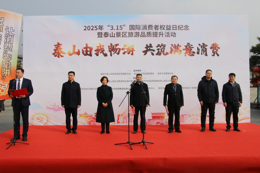 為迎接第43個“3·15”國際消費者權益日,3月11日,泰山景區“3·15”國際消費者權益日紀念暨泰山景區旅游品質提升活動在紅門游客中心廣場舉行,此次活動旨在進一步營造安全放心、公平誠信的消費環境,助力景區高質量發展。